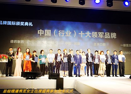 德药公司荣膺中国医药行业十大领军品牌并在香港参加颁奖仪式