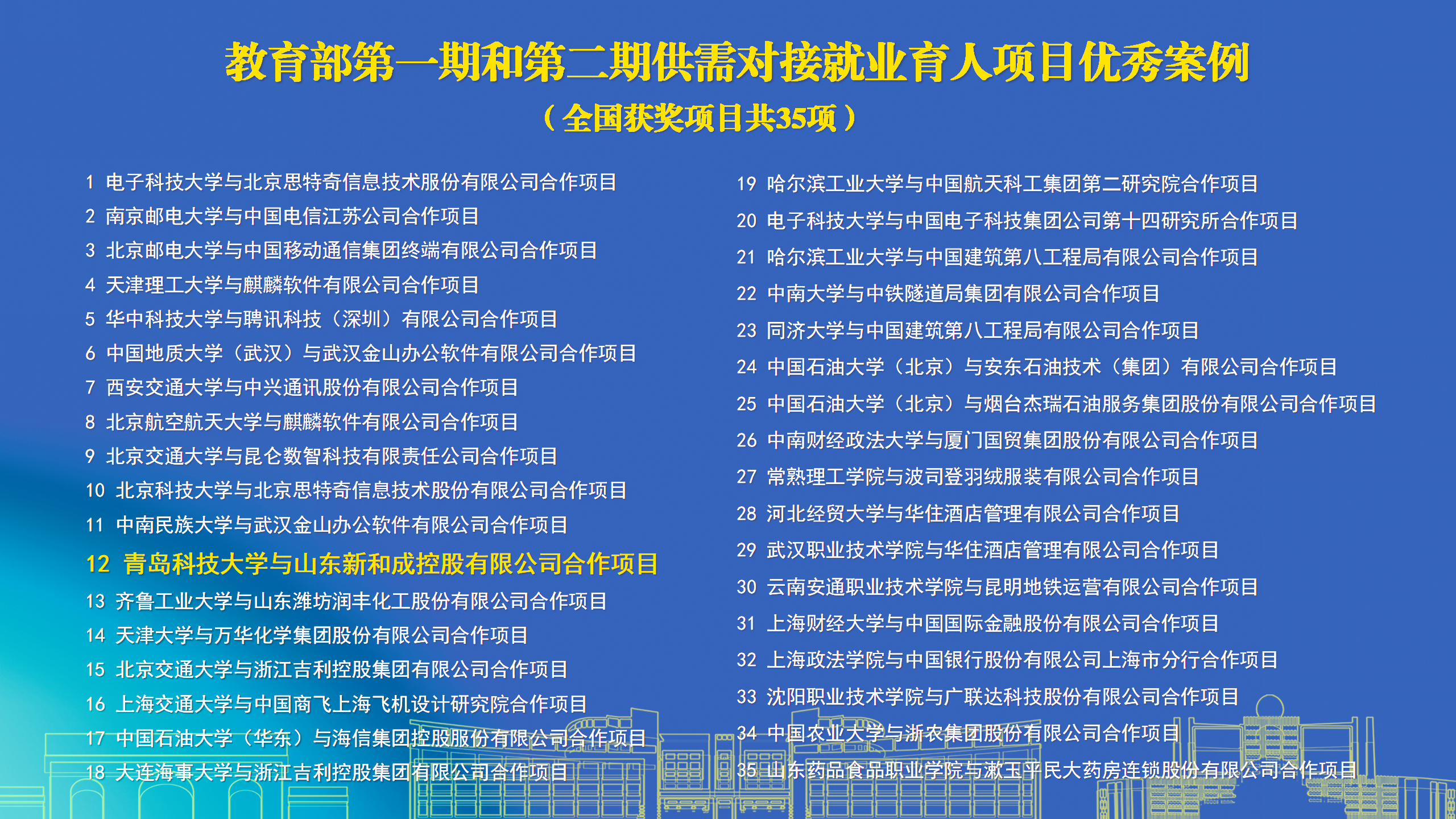 日前,教育部第三期供需对接就业育人项目交流推进会在成都电子科技大学举行,全国400余所高校、150余家企业受邀参加,会上公布教育部第一期、第二期供需对接就业育人项目优秀案例获奖名单,全国共35项。其中,BB贝博艾弗森官方网站与山东新和成控股有限公司合作,由化工学院承担的项目《基于产教深度融合的化工专业实习实践基地建设模式创新与实践》(项目负责人耿赛),在全国2万余项校企合作项目中脱颖而出成功入选。