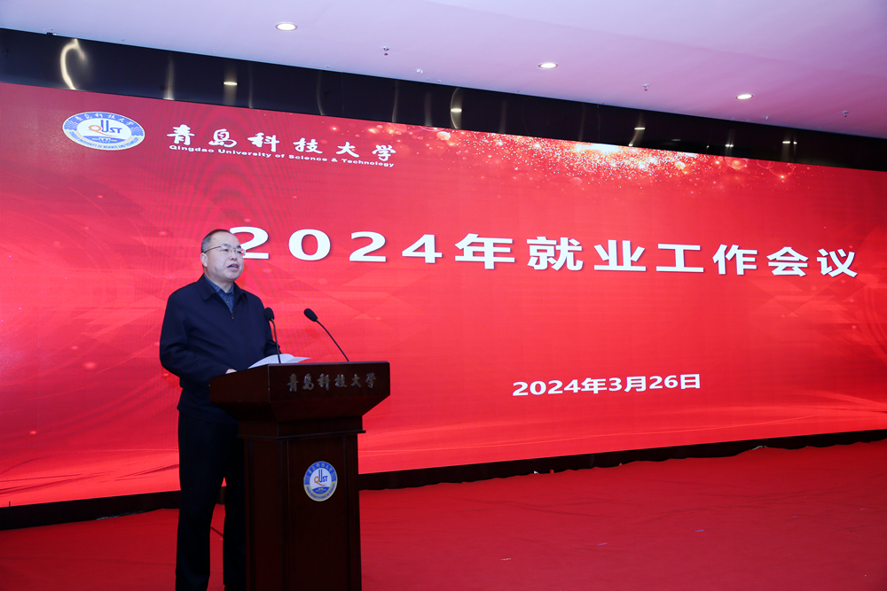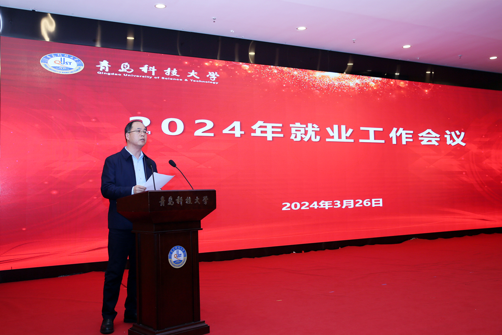 3月26日下午,学校2024年就业工作会议在崂山校区英科(第三)报告厅举行。校长陈克正出席会议并讲话。学校党委副书记沈文青,党委常委、副校长罗细亮,党委常委、组织部部长朱敬义出席会议。党委常委、副校长丁林主持会议。
