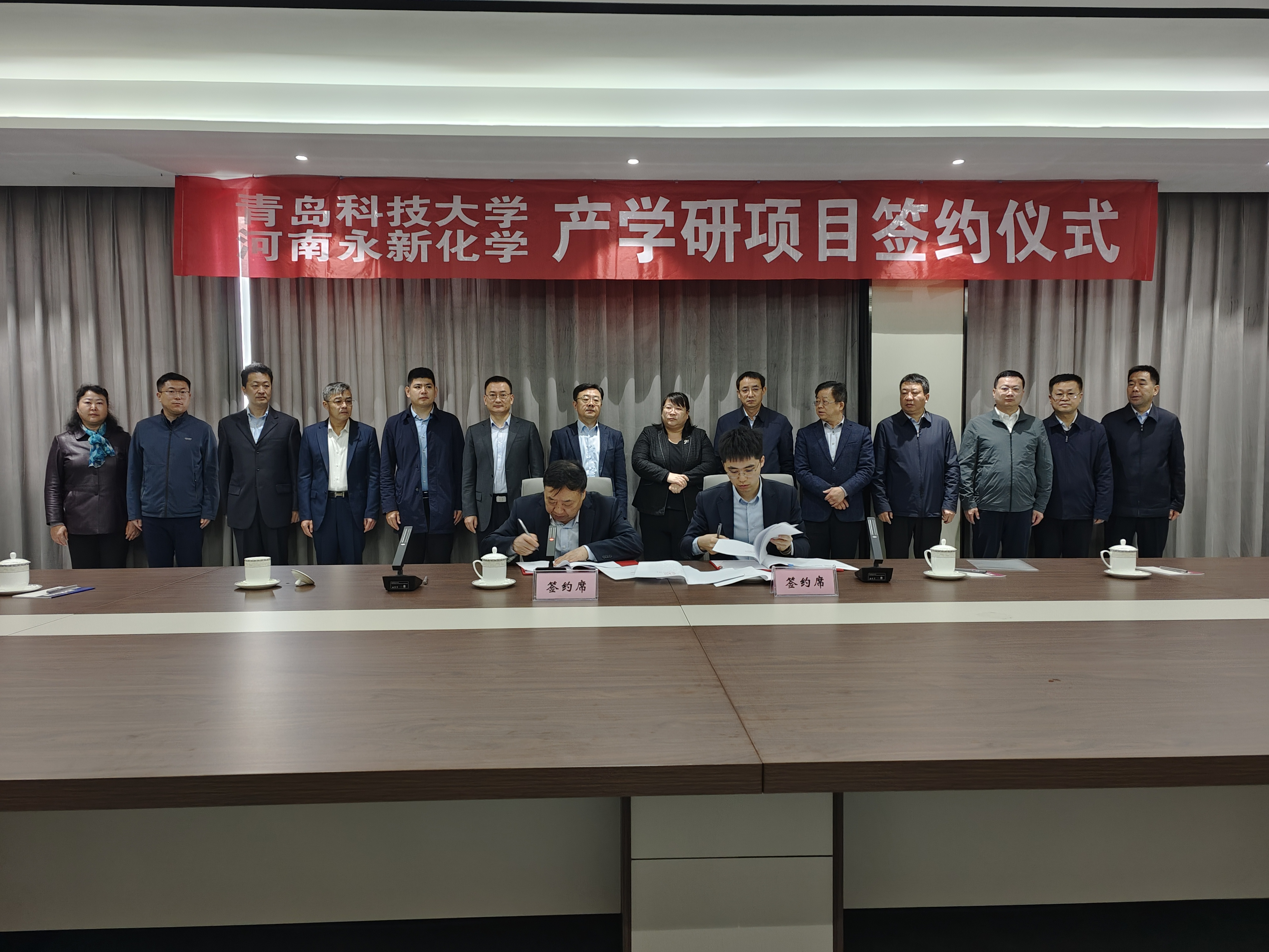 轮胎先进装备与关键材料国家工程研究中心主任汪传生与河南永新化学股份有限公司总经理张鑫淦代表校企双方签署了合作框架协议。