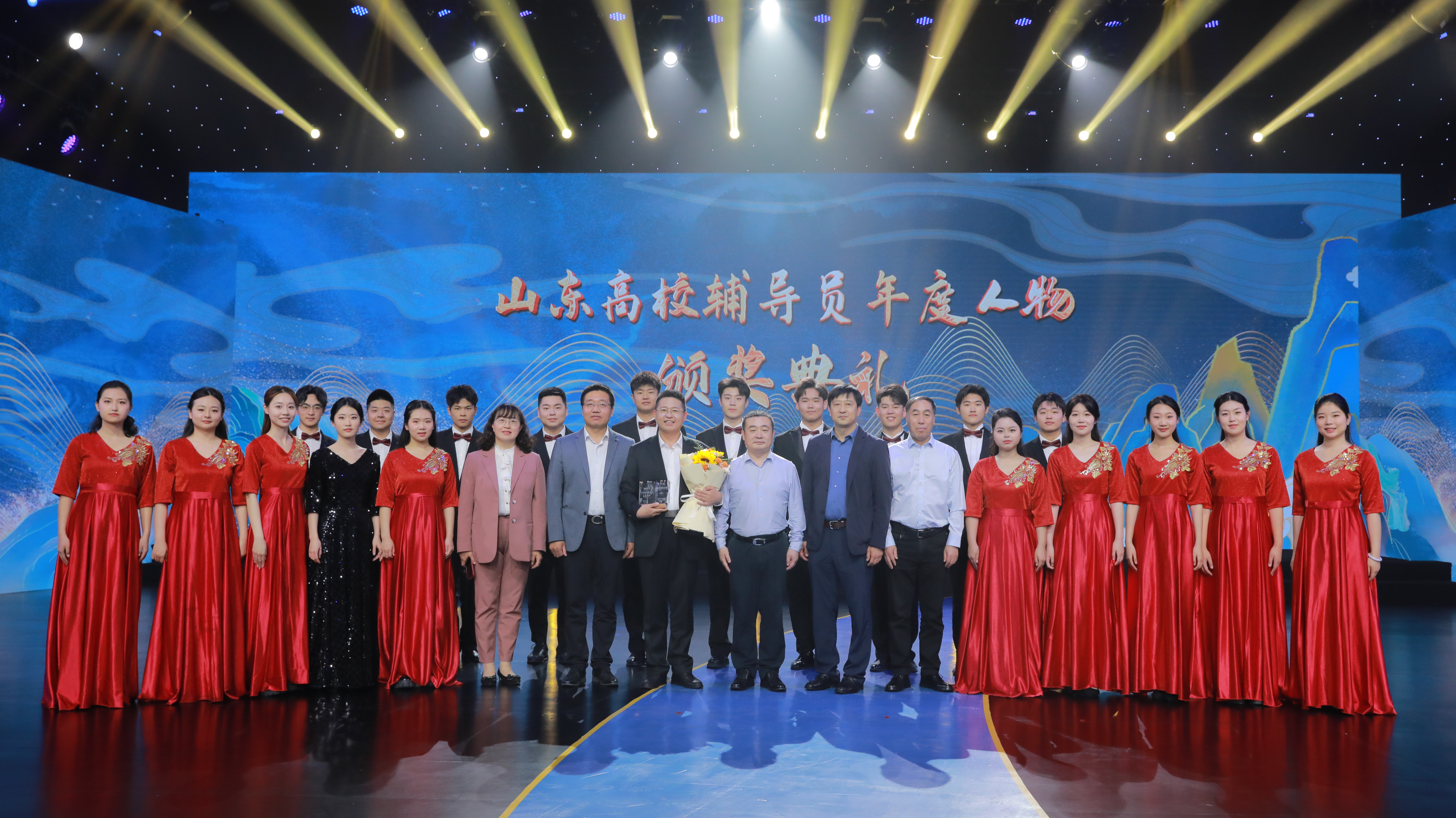 5月8日,由中共山东省委教育工委主办、山东教育电视台承办的2023年“山东高校辅导员年度人物”颁奖典礼在山东教育电视台举办,山东省教育厅总督学王志刚,山东教育电视台党委书记、台长王上,山东省教育厅思政处处长陈成标等出席颁奖典礼。学校党委学生工作部部长王丽、红润初心工作室“音为爱”红歌团受邀参加本次活动。