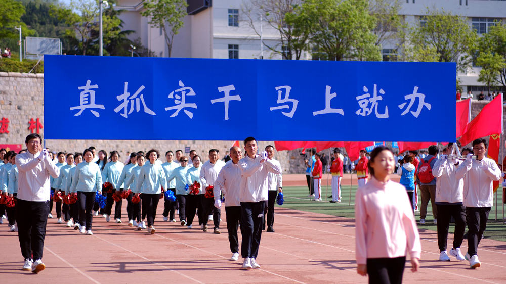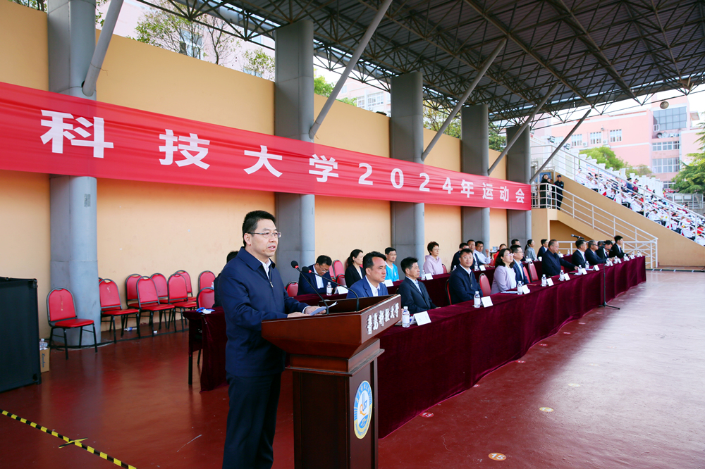 陈克正宣布BB贝博艾弗森官方网站2024年运动会开幕。他指出,学校高度重视体育工作,坚持将“提高学生身体素质、提高学生综合素质、服务学生全面发展”作为目标导向,闯出了一条“课堂+实践+联赛”三平台五结合一体化的体育综合改革路径,体育综合育人成效显著。广大师生的锻炼意识持续增强,身体素质不断提升,“拥抱体育、出彩人生”的理念更加深入人心。近年来,健康跑参与度不断提高,尤其是在液体黄金跑鞋的加持下,同学们的运动热情持续升温,跑步打卡已然成为新风尚。希望全体运动员在2024奥运之年,发扬“更快、更高、更强、更团结”的奥林匹克精神,勇于拼搏、赛出风格、赛出水平;希望全体裁判员、教练员和工作人员恪尽职守,以高度的责任心、热情的服务和无私的奉献,优质高效地完成赛会的各项工作;希望广大师生发扬体育精神,相互学习、加强交流、增进友谊,把运动会办成“爱体育·兴科大”的盛会,热爱体育、拥抱体育,为出彩人生打下坚实的基础,为加快推进“特色鲜明、走在前列”的高水平大学建设,持续贡献智慧和力量。
