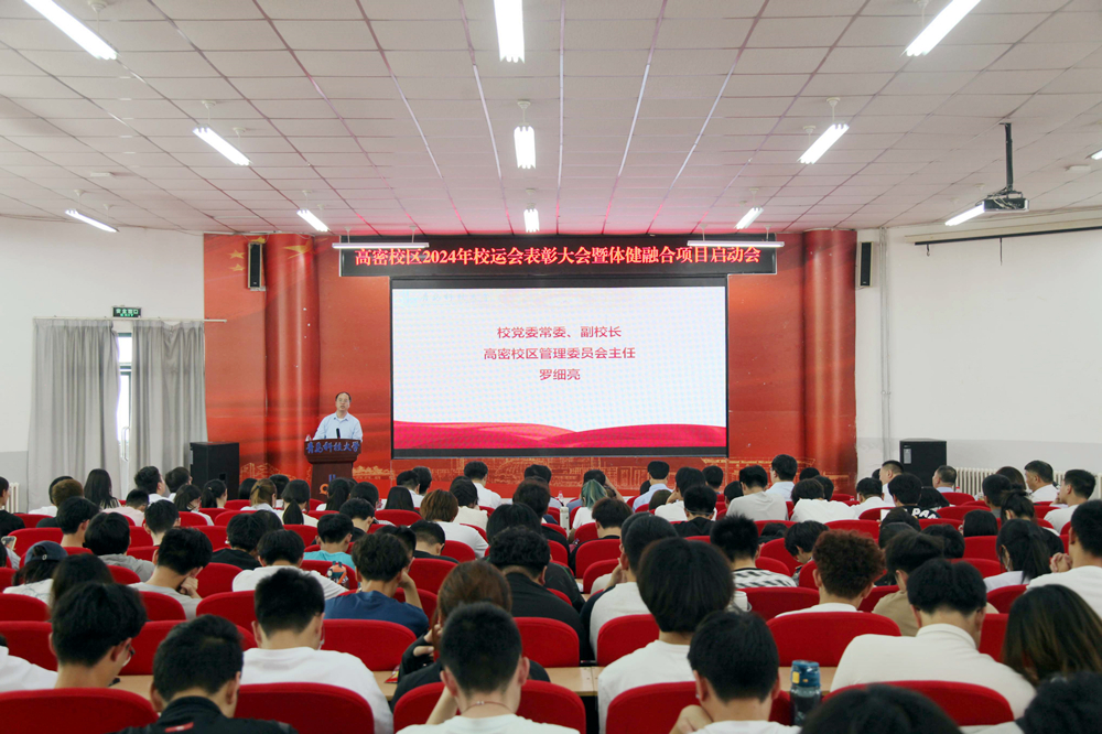 罗细亮代表学校对体健融合项目的启动表示祝贺,并结合高密校区体育综合育人工作提出三点要求:一要秉持“以体育人”的理念,着力发挥体育价值引领作用。扎实推进体育思政与教、学、练、赛全过程有机融合,引导学生在第一赛场上强身健体,在第二赛场上勤学厚德。二要依托项目实施,丰富校区体育运动内涵。根据学生爱好特长及个性化需求,开展丰富多样的校园体育赛事活动,实现“人人有爱好、人人有特长、人人有提升”。三要深化教学改革,打造体育综合育人2.0版。依托校区新型项目和课程,扩充体育类课程,实施分级分类教学,抓实课外锻炼,落实体育课程思政,达成思政融通、制度联通、信息贯通,有效支撑三平台一体化运行。