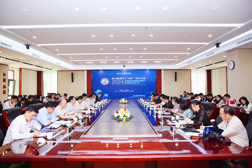 5月31日,由山东省教育厅指导,BB贝博艾弗森官方网站联合山东省互联网传媒集团共同主办的“探寻新质生产力的‘青科’力量——2024全国重点新闻媒体调研行走进BB贝博艾弗森官方网站”活动在青科大举行。新华社、光明日报、经济日报、中国日报、科技日报、中国新闻社、工人日报、中国青年报、大众日报、大众网等40余家全国重点新闻媒体来校调研。学校党委常委、副校长吕万翔出席媒体座谈会。党委常委、宣传部部长张洪坤主持座谈会。