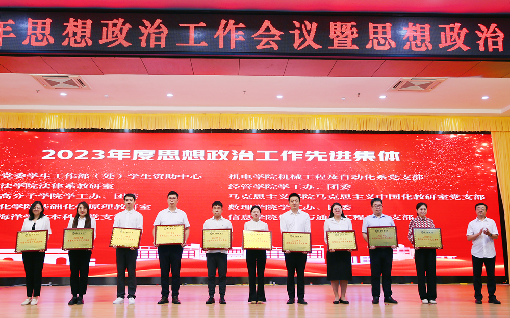 党委书记李兴伟为学校思想政治工作先进集体颁奖。