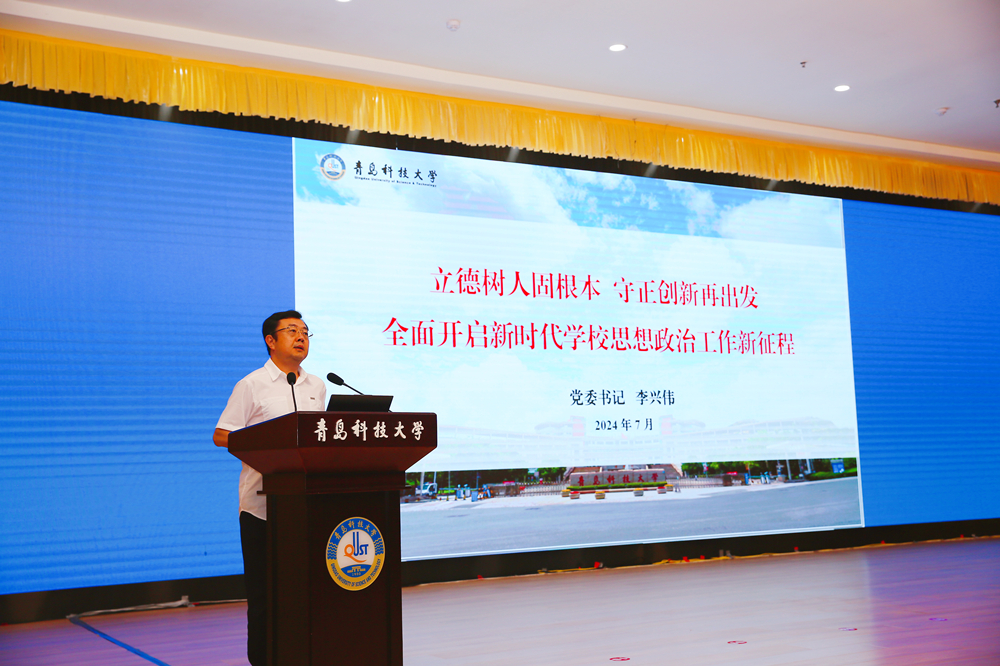 党委书记李兴伟作题为《立德树人固根本,守正创新再出发,全面开启新时代学校思想政治工作新征程》的总结讲话。他代表学校党委向长期以来奋斗在各个岗位上的全体教职员工表示感谢!向获得表彰的思想政治工作先进集体和个人表示祝贺!他充分肯定了近些年学校思想政治工作所取得的成绩,强调做好新时代学校思想政治工作,要站在中国式现代化全局的战略高度,深刻认识做好新时代学校思想政治工作的重大意义,守正创新推进新时代学校思想政治工作高质量发展。