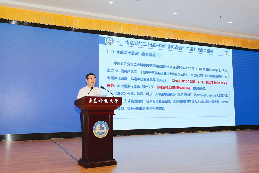 8月29日至30日,学校在崂山校区第二报告厅举办学习贯彻党的二十届三中全会精神暨2024年暑期中层干部培训班,学校党委和行政领导班子全体成员出席会议。
