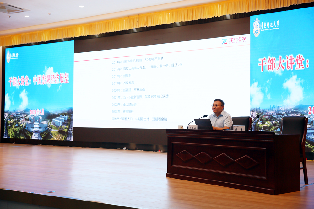 为深入学习贯彻党的二十届三中全会精神,9月5日,学校邀请著名经济学家、泽平宏观创始人、中国民营经济研究会副会长任泽平博士做客“干部大讲堂”,为干部师生作了题为《中国宏观经济展望》的报告。学校党委领导班子成员李兴伟、吕万翔、丁林、张洪坤、秦姣等出席培训会。培训会由党委副书记李勇主持。