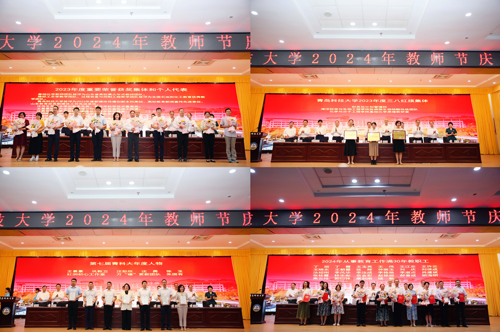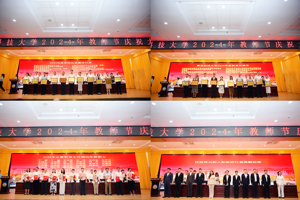 会上,党委常委、副校长吕万翔宣读了《2023年度重要荣誉获奖集体、个人名单》《关于表彰2023年度先进集体、先进工作者的决定》《关于表彰2023年度“教育先锋号”“教育先锋”的决定》《关于表彰2023年度三八红旗手(集体)的决定》《关于表彰第七届“青科大年度人物”的决定》《从事教育工作满三十年人员名单》。