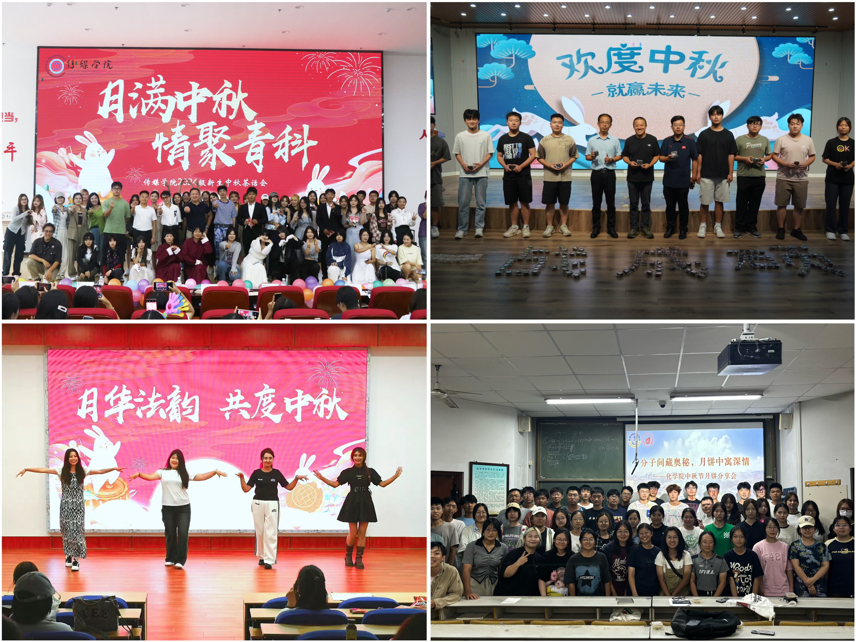 信息学院开展“月满中秋·情满信息”中秋系列活动,打造别具一格“活动课”、别出心裁“实践课”、别开生面“思政课”,让新生展示才艺、实践锻炼、接受教育。中德科技学院开展“月圆人团圆 新程共起航”系列活动,以中秋晚会的形式,丰富新生校园文化生活,弘扬和传承中华优秀传统文化。高分子学院开展“‘橡’聚中秋夜 千里共婵娟”系列活动,通过红歌赛、发月饼、拍快闪、投壶、灯谜DIY等形式,让全体橡尚青年感受到家的温度。环境学院开展“团团圆圆与你环环相扣”系列活动,为全体新生发放个人名片和中秋月饼增强归属感和认同感,组织观看红色电影、设置心愿祝福墙、举办中秋文艺晚会,让“团团圆圆与你环环相扣”。生物学院开展“月满中秋 共话佳节”系列活动,面向全体新生举办中秋奇妙游暨2024级新生梦想秀,为新生搭建展示自我的青春舞台。材料学院开展“月圆中秋,情满材料”系列活动,通过举办中秋茶话会,增进师生之间的沟通与交流,增强新生对学校的归属感。高密校区开展"情满中秋,共话团圆"等中秋节系列主题活动,采用线下背古诗、剪纸、写中秋团圆寄语和拍摄阖家团圆照片等活动,让每位同学在中秋佳节感受到浓厚的节日氛围,感受校园的温馨。