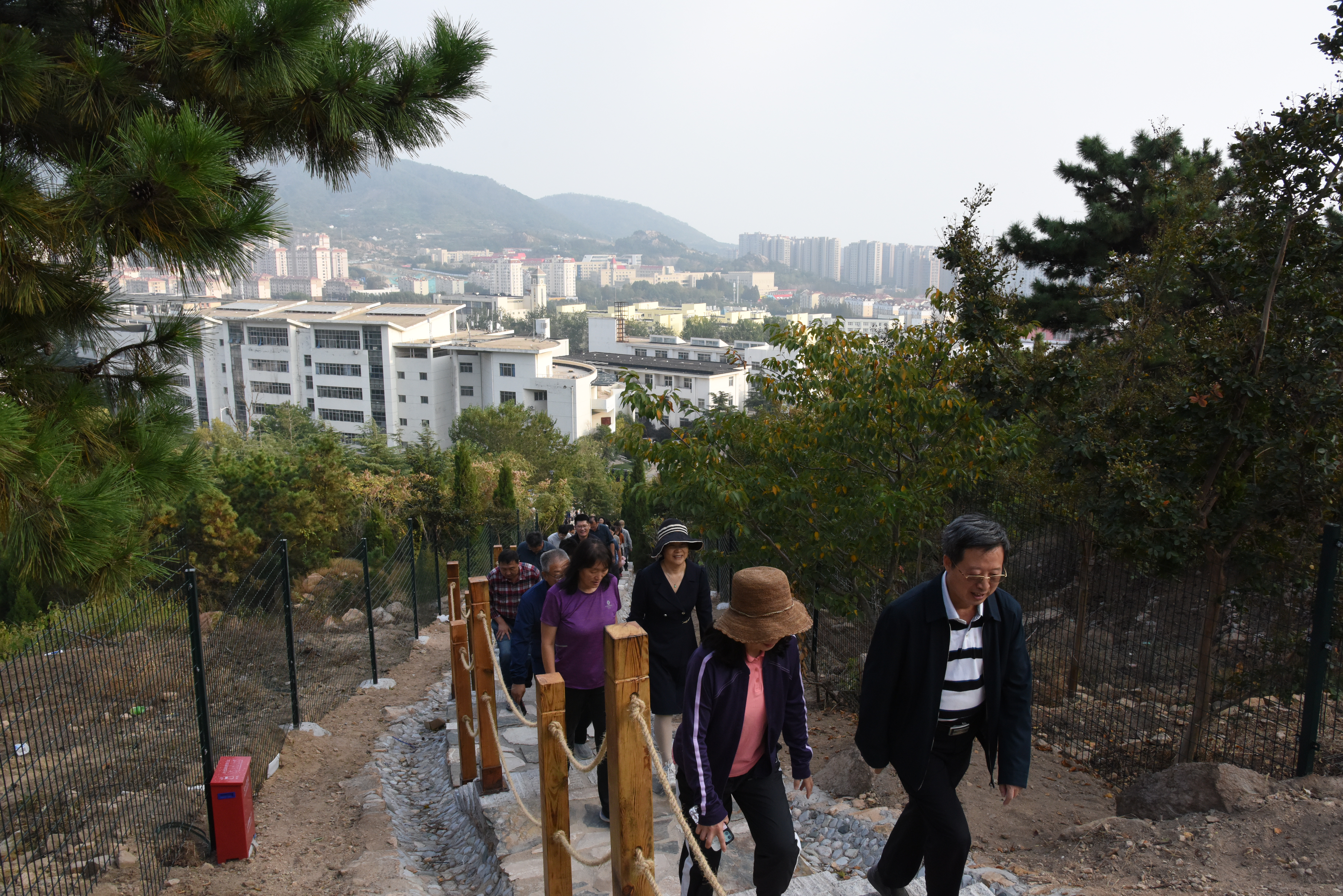仪式结束后,学校机关党委工会组织机关职工代表开展登山健步行活动,一起见证金岭山生态公园的建成,亲身体验山头公园的优美环境。活动得到机关职工积极响应,纷纷报名参加登山健步行活动。此次活动旨在倡导绿色低碳的生活理念,号召广大职工加强锻炼、强健体魄、勇攀高峰,以饱满的精神状态为建设“特色鲜明、走在前列”高水平大学贡献智慧和力量。