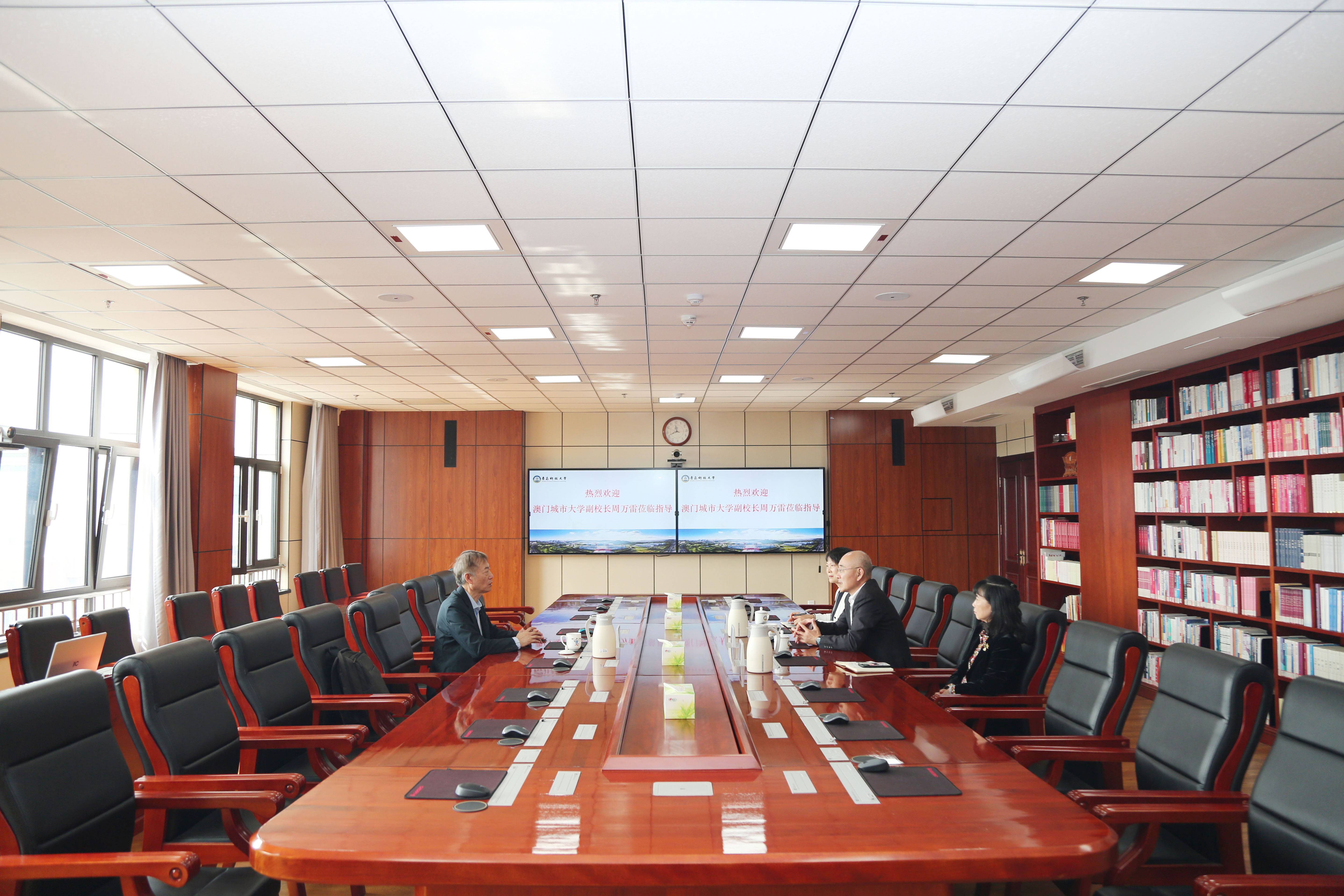 10月25日,澳门城市大学副校长兼数据科学学院院长周万雷教授应邀来校访问。校长陈克正,党委副书记沈文青,党委常委、统战部部长秦姣出席座谈会。