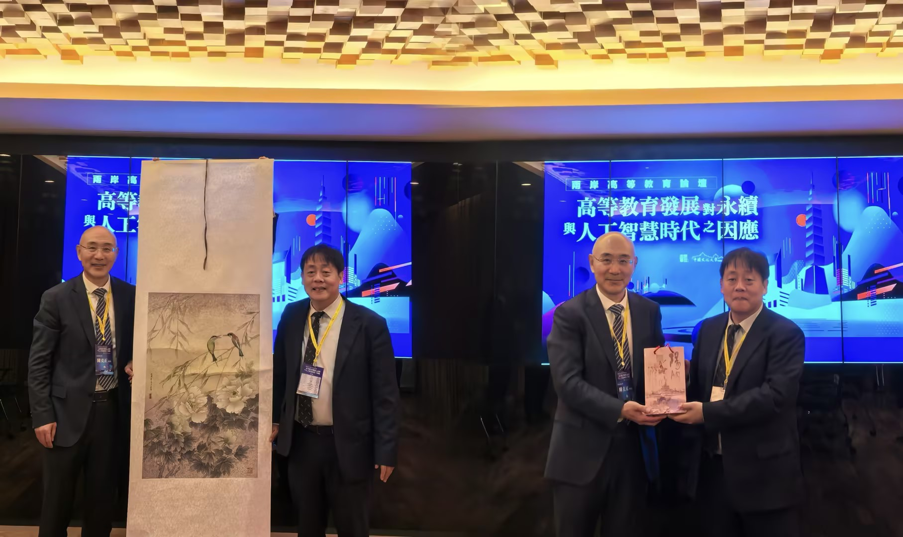 会议期间,校长陈克正与中国文化大学校长王子奇会面并互赠礼物。