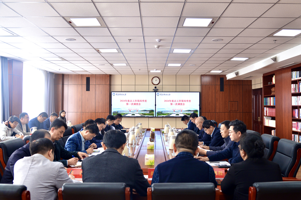 11月18日下午,学校在崂山校区综合服务楼5015会议室召开2024年重点工作第四季度第一次调度会。校长陈克正主持会议并讲话,党委常委、副校长李少远,党委常委、副校长罗细亮出席会议,承担重点指标任务的相关部门负责人、分管副处长参加会议。