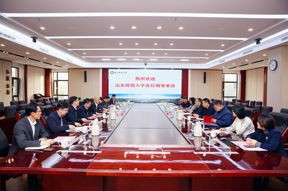 11月19日,山东师范大学党委书记冯继康一行来校考察交流。校长陈克正、党委副书记沈文青出席座谈会,党委常委、副校长吕万翔主持会议。