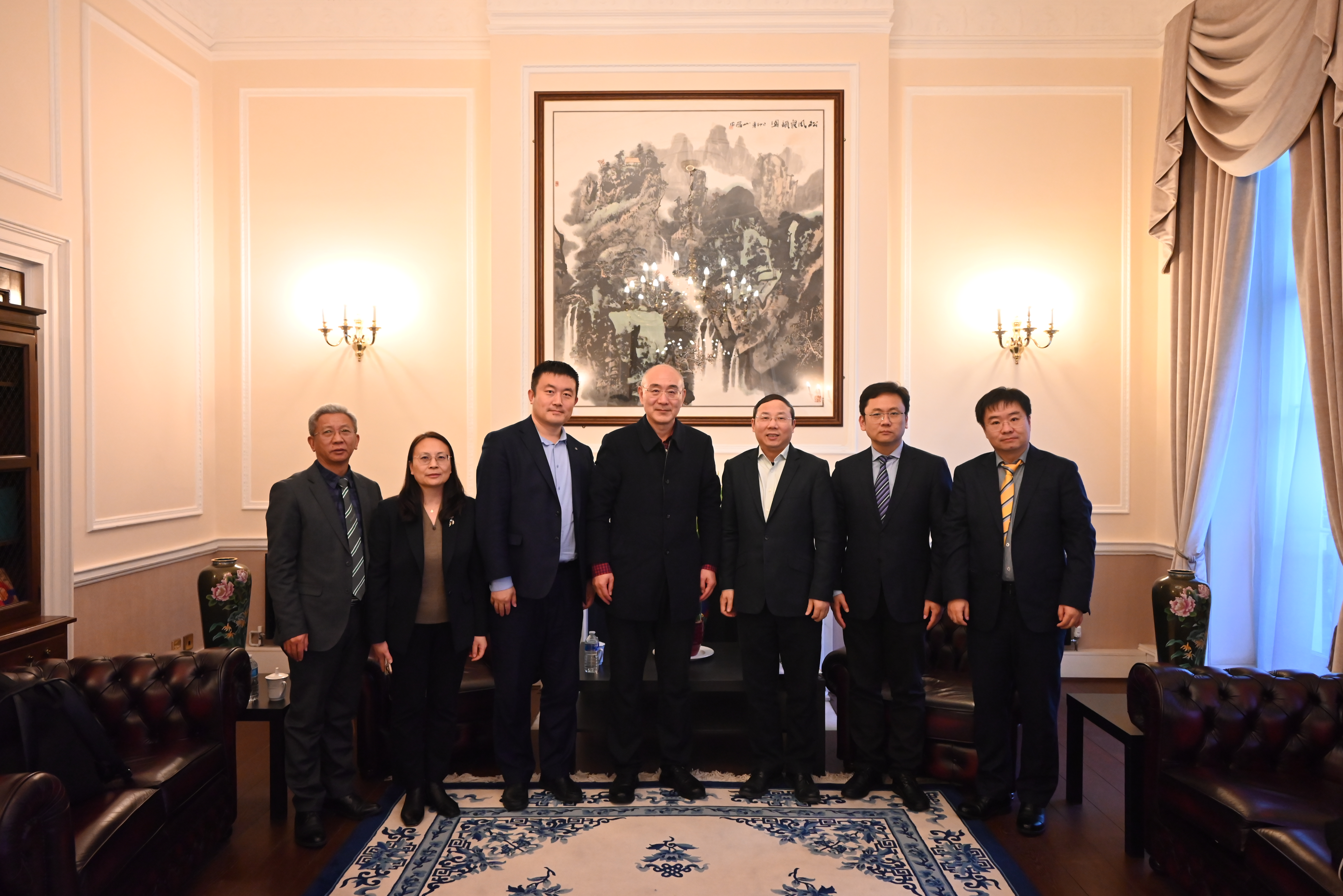 此外,代表团还拜访了中国驻英国大使馆,并与教育处参赞匡建江进行了会谈。代表团详细汇报了学校与英国高校的合作情况及对高层次人才引进的需求,得到了教育处的肯定与指导。