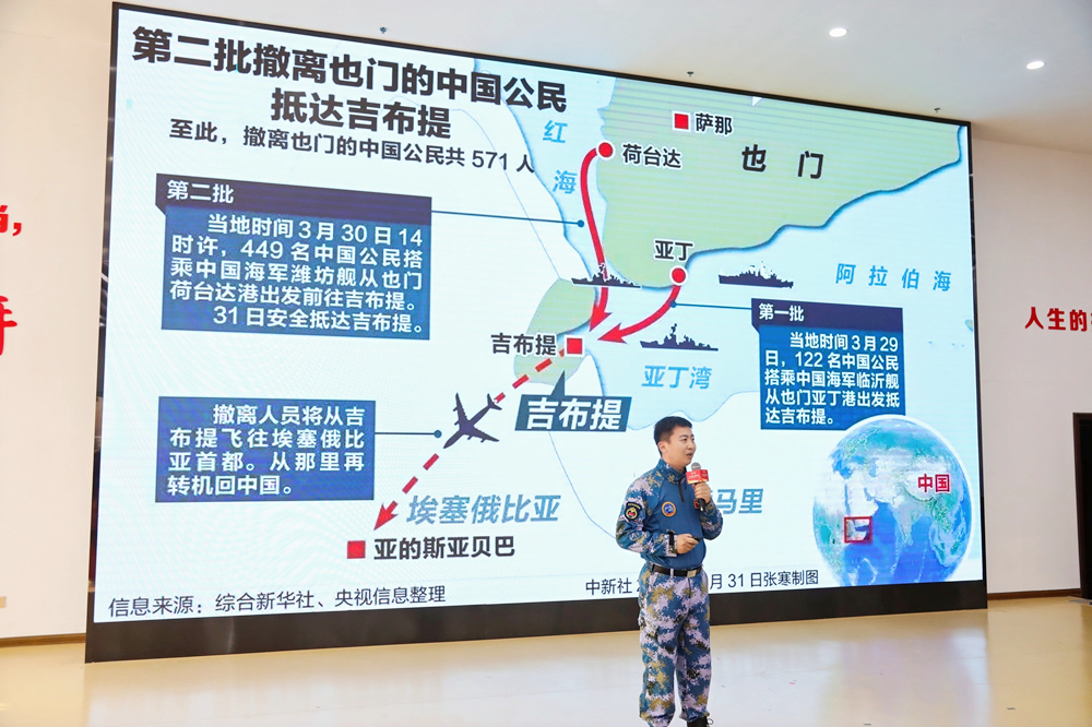全国模范退役军人、逐梦深蓝讲师团发起人林风谦及部分“逐梦深蓝”讲师团成员为现场师生作主题宣讲。