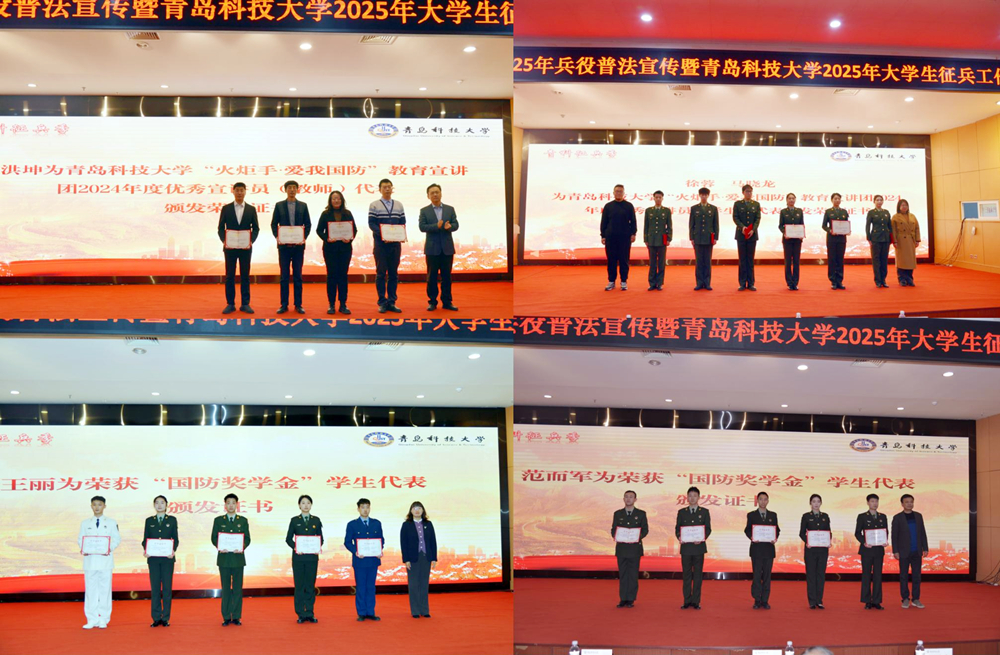 与会领导为“火炬手∙爱我国防”教育宣讲团2024年度优秀宣讲员代表颁发了荣誉证书,为“国防奖学金”获奖学生代表颁发奖学金证书。与会人员集体观看了2025年征兵宣传片。山东省“爱我国防”演讲比赛获奖选手、“火炬手∙爱我国防”教育宣讲团成员开展了“淬炼青春·筑梦国防—共赴百年之约”主题宣讲。动员大会前组织开展了征兵宣传暨军事体验活动。会后,与会人员共同观看了国防教育主题电影《一生交给党》。