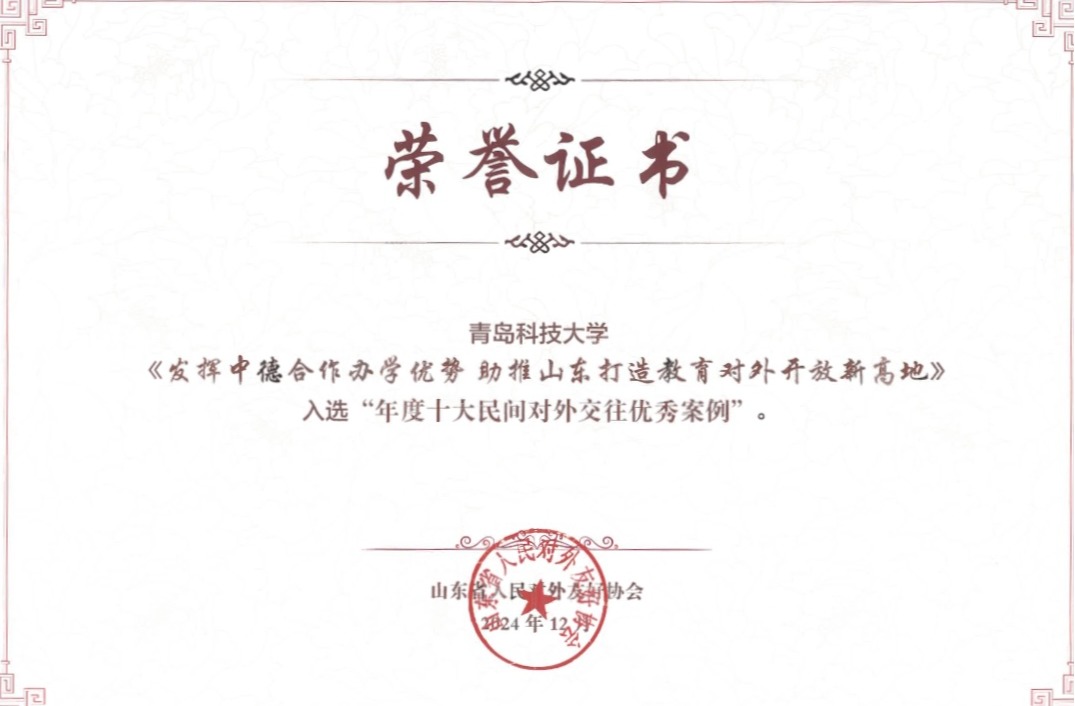 在74年的办学历程中,学校凝练出“北青科、南同济”的中德合作办学特色,学校中德科技学院纳入中德两国政府间合作项目,被誉为中外合作办学的典范。学校积极引进德国优质教育资源,完善合作机制,调整办学模式,并通过搭建多元化合作平台,优化人才培养体系,探索出集教育、科技、人才为一体的对德合作办学新模式。历经近30年发展,学校培养了3000余名具有中德两国文化背景、中德两种语言能力的国际化、复合型高级工程技术及管理人才,并与德国大陆马牌、朗盛集团等多家德国企业建立了联合实验室、研发中心,推动了科技创新与人才培养的紧密结合,形成了多维度的对德合作新生态,为山东省打造具有全国引领力、全球影响力的教育高地贡献“青科大方案”。