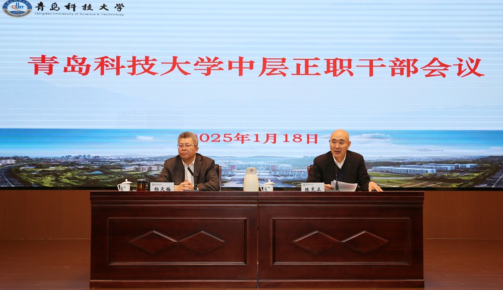 1月18日,学校在软控学术报告厅召开全校中层正职干部会。校党委书记杨天梅出席会议并讲话,校长陈克正主持会议。学校全体党委和行政领导班子成员出席会议。