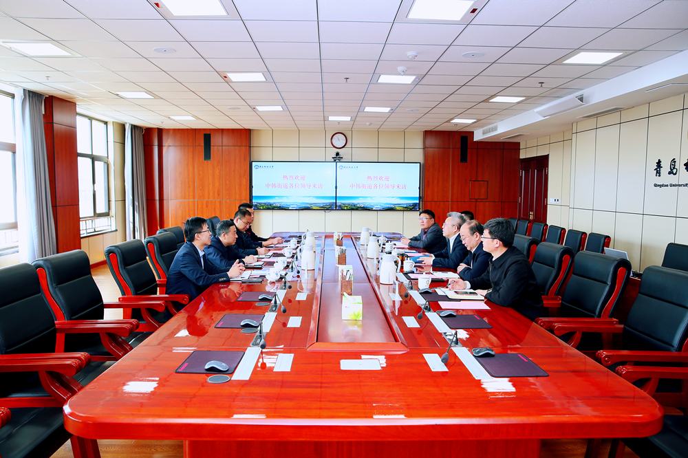 杨天梅对解本泉、谭瑞勇一行来校调研表示欢迎,对中韩街道、金家岭街道一直以来对学校的关心、支持和帮助表示感谢。他介绍了学校的发展历程和崂山校区基本建设情况,希望以此次交流为契机,进一步深化校地合作,推进崂山校区建设事宜,实现校地合作共赢和高质量发展。
