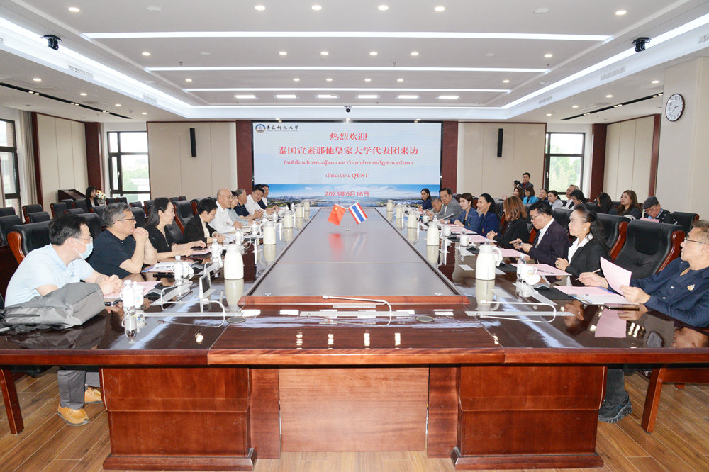 6月16日,泰国宣素那他皇家大学校长朱蒂甘·斯里维汶一行来校交流访问。校长陈克正、党委副书记沈文青会见了朱蒂甘·斯里维汶一行。橡胶谷集团副总裁路建平、青岛融冠产业发展有限公司董事长周璐参加座谈会。