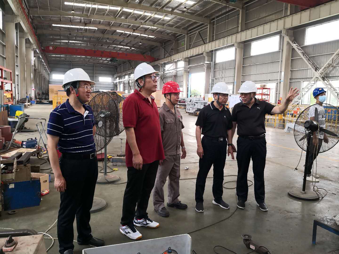 青岛市市北区滨海新区管理委员会新材料平台专班负责人贾洮,学校校庆第十走访组组长、机电工程学院党委书记孙立军,走访组成员、艺术学院党委书记许桂锋陪同走访考察。