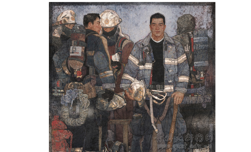 《使命》描绘了一个平静、普通的场景:消防员们灭火抢险后整装小憩,疲乏中透露出坚毅和欣慰,安静地伫立在硝烟末烬的火场,等待着再赴险地的指令。它承载了作者对中国新时代英雄主义的重新理解:“英雄”并不遥远和虚幻,而是真实存在于我们的日常生活之中,甚至存在于很多被我们熟视无睹的细微之处。