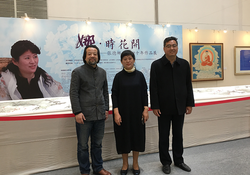 日前,我校1985届服装设计专业张德娜校友个展“娜·时花开——张德娜从艺四十年作品展”在潍坊举办的第九届中国画节上开幕。艺术学院院长李宏文、学校校友办副主任曲波到展览现场观看张德娜的艺术作品,并代表学校对展览的成功举办表示祝贺,同时邀请张德娜校友回母校做客校友讲坛。