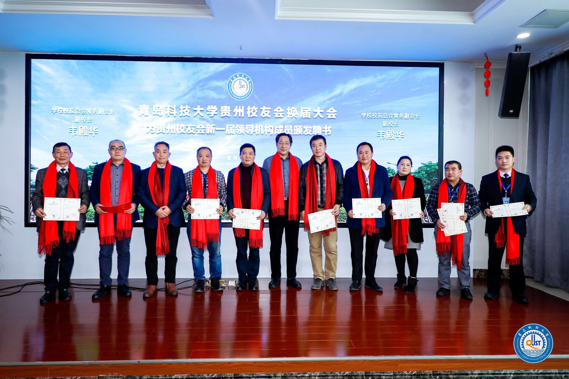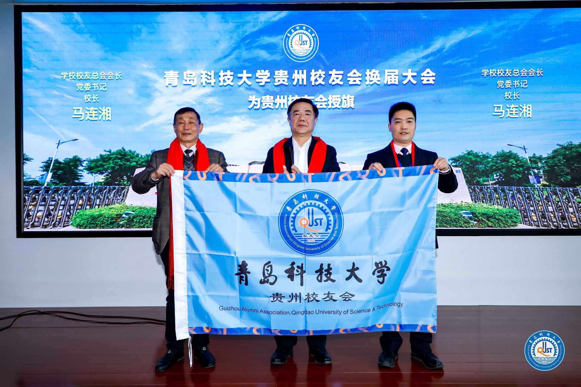 马连湘为贵州校友会授旗,并与韦殿华、贵州校友会会长闫光龙、云南校友会会长胡沙娃、重庆校友会会长谢友升、四川校友会秘书长杨涟共同开启“青科大西南地区校友协作平台”。马连湘谈到,校友是学校声誉的重要标志和名片,各行各业的校友靠自己努力拼搏收获了成功,诠释着优良的科大“家风”,母校真诚祝福各位校友。学校建立了“校友总会指导、地方校友会、学院校友会、年级理事会相互融合”的校友会工作网络,校友工作要进一步团结校友,凝聚力量,创造希望。