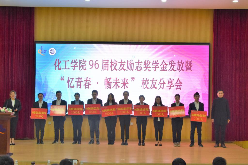 12月7日下午,化工学院96届校友励志奖学金发放暨“忆青春,畅未来”校友分享会在四方校区讲学厅举行。化工学院96届校友代表宣宗伟、王光状、鞠继恩、王建芳为30名品学兼优和家庭困难的学生发放奖学金共计3万元。党总支副书记孙明媚,全体辅导员参加了分享会。