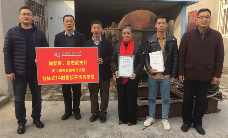 12月19日,尚新良和管志欣夫妇向BB贝博艾弗森官方网站“中国橡胶博物馆”捐赠文物仪式在四方校区举行。捐赠人向学校捐赠了60年代分体式14吋橡胶开炼机总成一套,博物馆筹建办主任聂广明代表学校接受捐赠,并为捐赠者颁发捐赠证书。博物馆筹建办副主任曲波主持捐赠仪式。