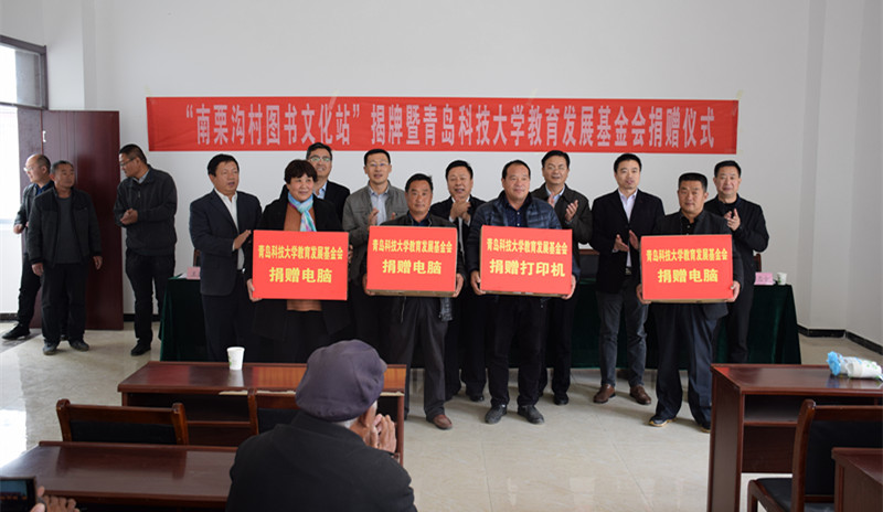 活动中举行了“南栗沟村图书文化站”揭牌仪式,基金会向南栗沟村捐赠了电脑、打印机、图书等物品。