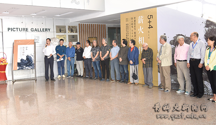 9月28日15时30分,副校长韦殿华宣布2017年“校庆日”系列活动之“欢度国庆节、喜迎十九大”BB贝博艾弗森官方网站“薪火相传”5+4师生艺术作品展开幕。出席开幕式的有学校原党委书记刘立魁,以及学校组织部、人事处、学生处、团委、校友办公室等领导。离退休工作处处长丛松涛致欢迎词,原艺术学院院长邱振亮和校友代表薛峰作了发言。