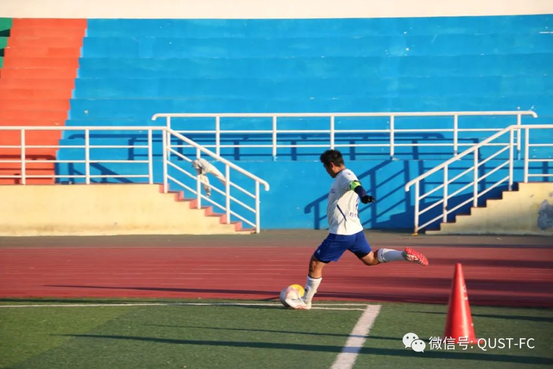 第一节比赛,青科大校友队正是逆风方向。前十分钟,对方阵形前移、重兵压境,造成了几次威胁,守门员仲兆瑞高接低挡,纷纷化解。其中一次出击未碰到皮球,眼见足球从远门柱滑门而出,场下球员都惊出一身冷汗!