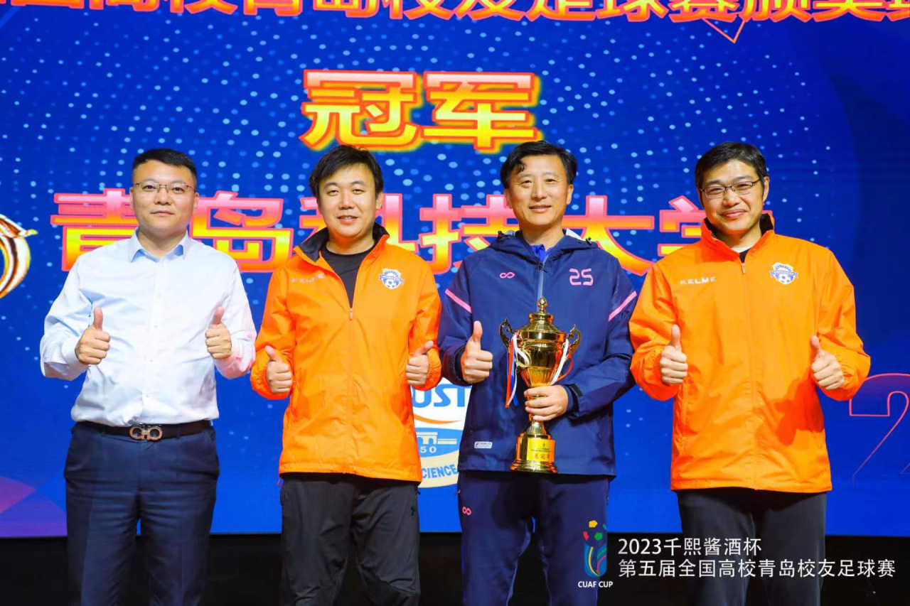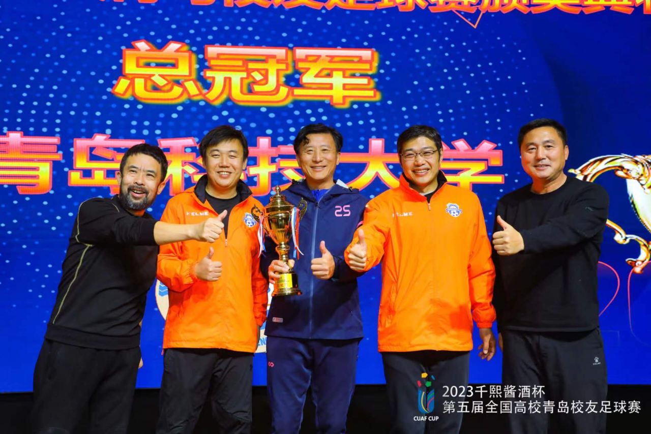 在校领导、校友总会、青岛校友会和广大校友的支持鼓励下,总决赛凭借35号陈久平在禁区右侧的一记速度奇快的“贴地斩”,青科大1:0决胜北大厦大联队,终获赛事总冠军和省内冠军。