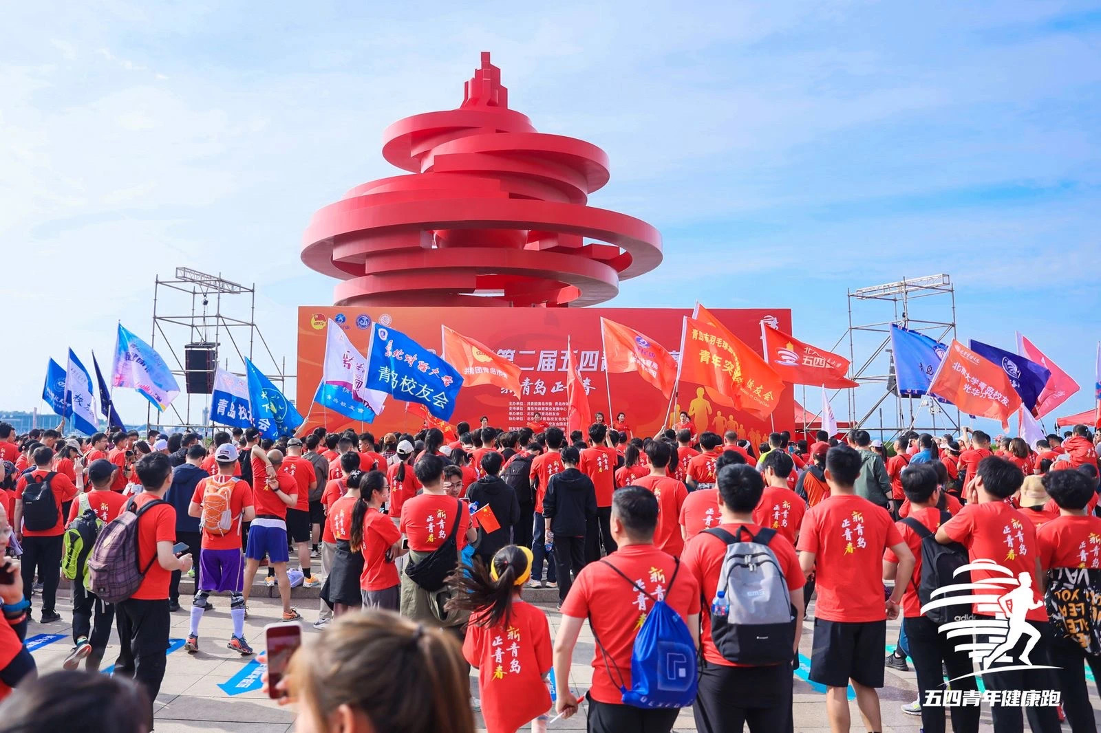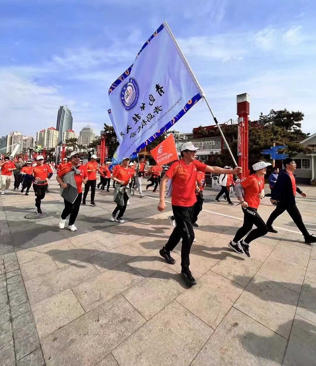 校友们从五四广场的著名雕塑,“五月的风”集合出发,依次经过奥帆中心,燕儿岛公园等具有五四运动精神和新时代具有发展创新特色的景点,用运动彰显青春的色彩,用青春点缀城市的风貌。