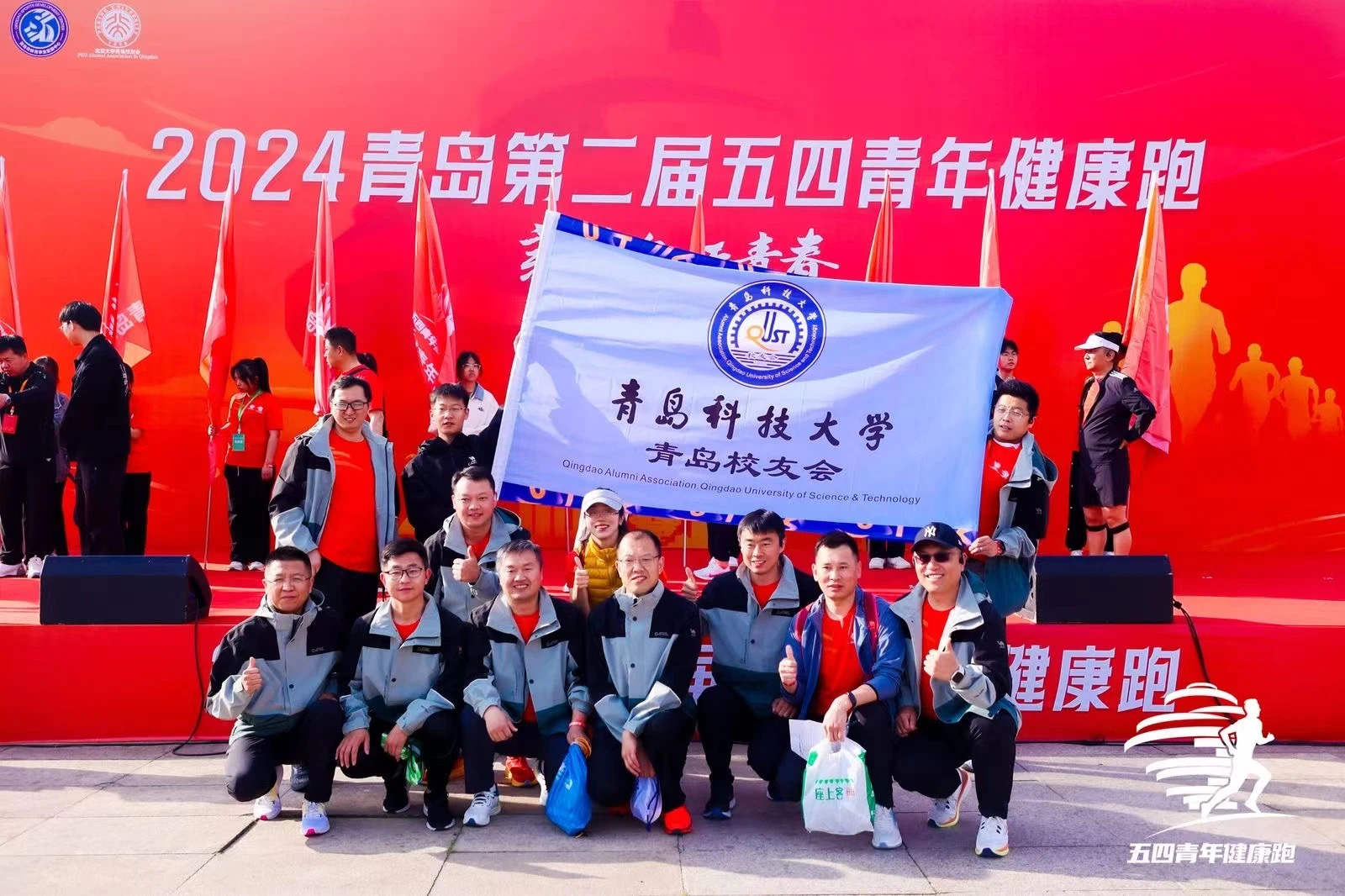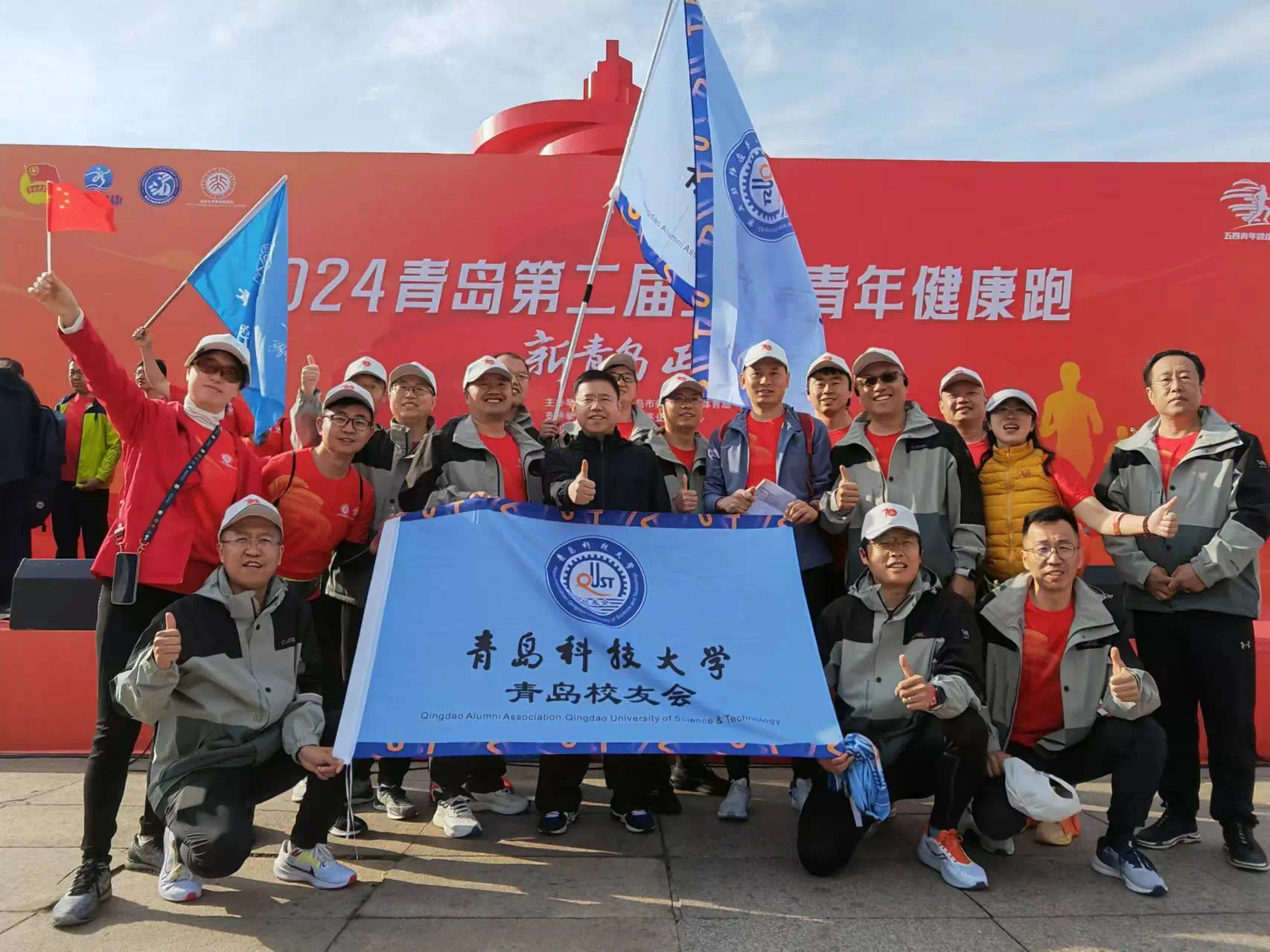 5月4日,2024青岛第二届五四青年健康跑活动顺利举行。本次活动由共青团青岛市委等单位主办,北京大学青岛校友会承办。青科大青岛校友会受邀组团参加,副会长薛峰代表校友跑团上台接受领导授旗。