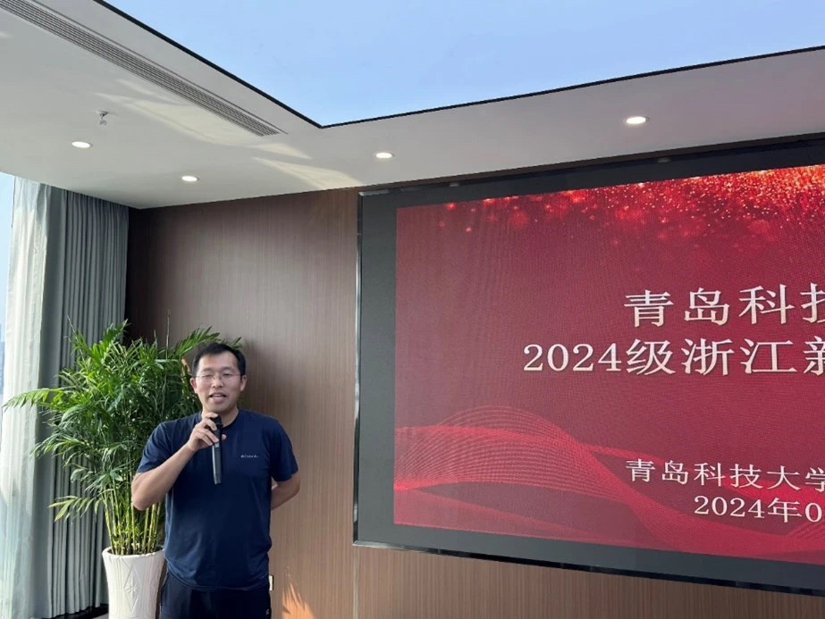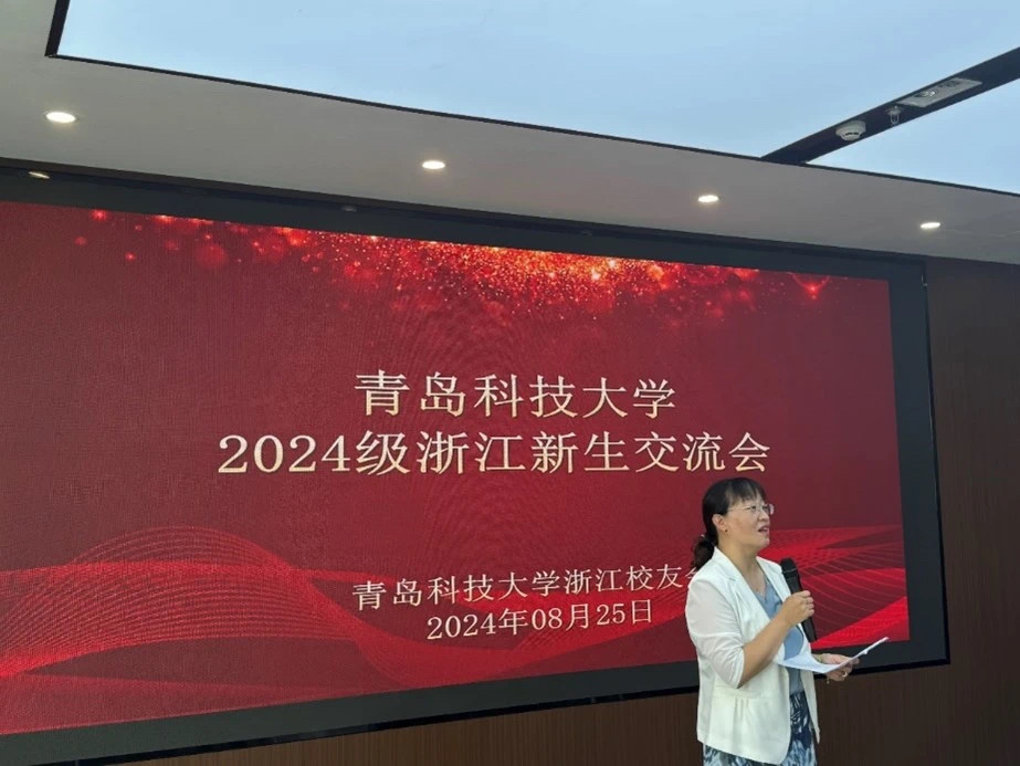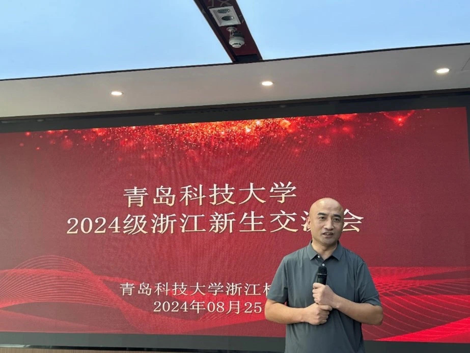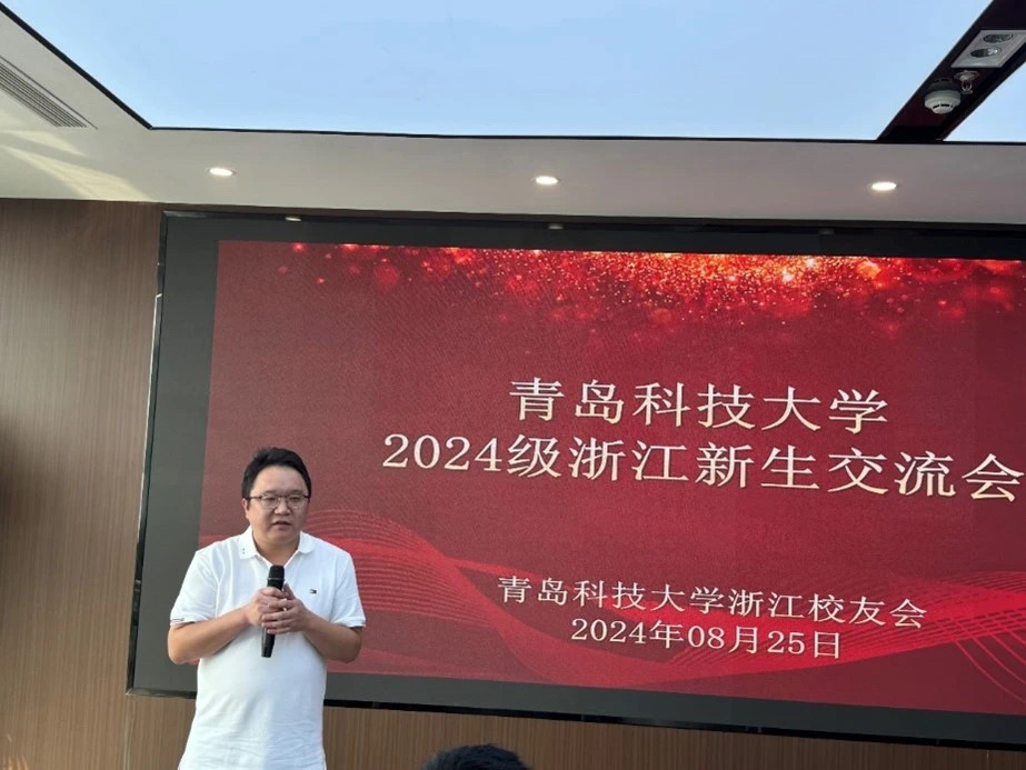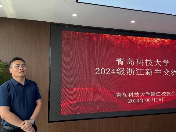 浙江校友会副会长兼秘书长王先宁代表浙江校友会致辞,他对学校大力支持浙江校友会开展工作表示感谢,并对2024级新生加入青科大这个集体表示欢迎和祝贺。他详细介绍了青科大浙江校友会的发展情况,他希望在未来的日子里能与各级校友之间加强联系,真正让校友会成为校友间信息共享、加强协作、互帮互助的重要平台和心灵家园,为母校发展添光添彩。