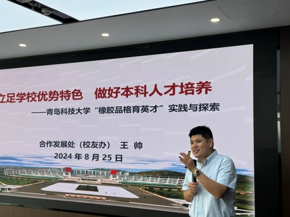 王帅作了题为《立足学校优势特色 做好本科人才培养—BB贝博艾弗森官方网站“橡胶品格育英才”实践与探索》学校工作情况汇报,介绍了学校“一体两翼三服务”校友工作格局等内容。