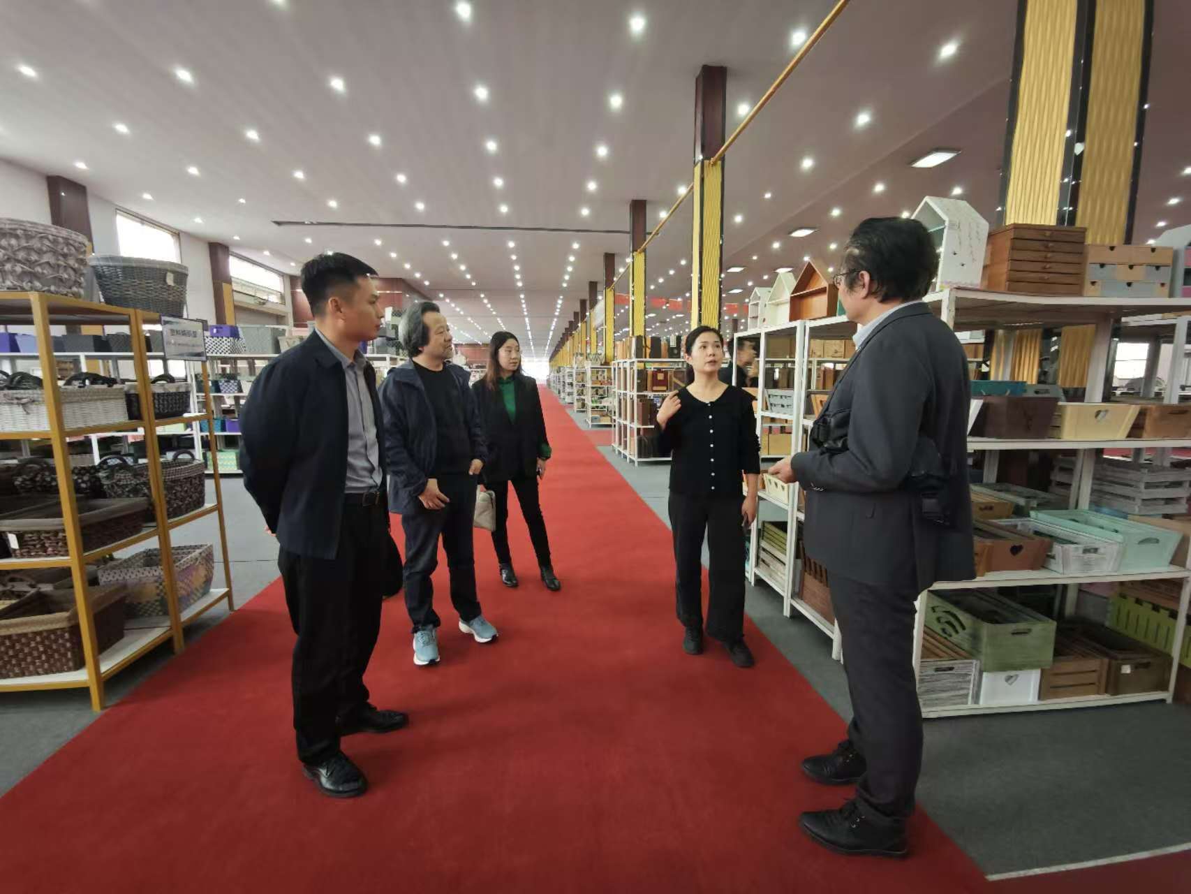 调研组一行还在曹县发改局、工信局领导的陪同下,深入企业一线进行实地走访调研。艺术学院院长李宏文带领的汉服产业调研组,前往辰霏服饰、云裳集饰产业园、电商汉服基地和花王数码印花等企业进行了走访座谈。调研组一行不仅参观了企业的生产现场和展示中心,还与企业负责人就汉服文化挖掘、设计创新、市场趋势分析等方面进行了广泛探讨。