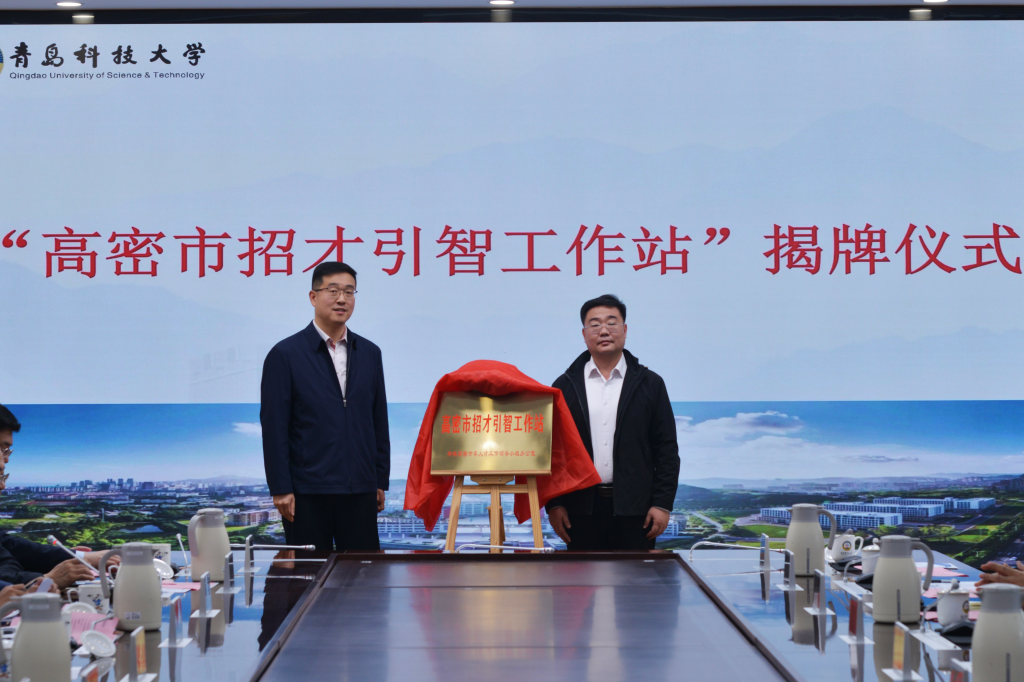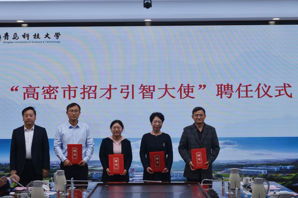 高密市科技局党组书记、局长李晓宁介绍了高密市科技创新及校企合作基本情况,高密市委组织部副部长、老干部局局长张武伟和学校正处级组织员王磊共同为“高密市招才引智工作站”揭牌,高密市人社局党组书记、局长杜殿来为郭曰铎、王许云、高传慧、孙立水等4名高密籍专家教授颁发“高密市招才引智大使”聘书,高密团市委书记曾繁昌为徐辉、刘家裕、张宁晶、徐沂昊等4名高密籍优秀学生代表颁发“高密市校园引才专员”聘书。高密市相关企业负责人介绍了企业科研需求,与参会有关学院教授团队进行了技术交流。