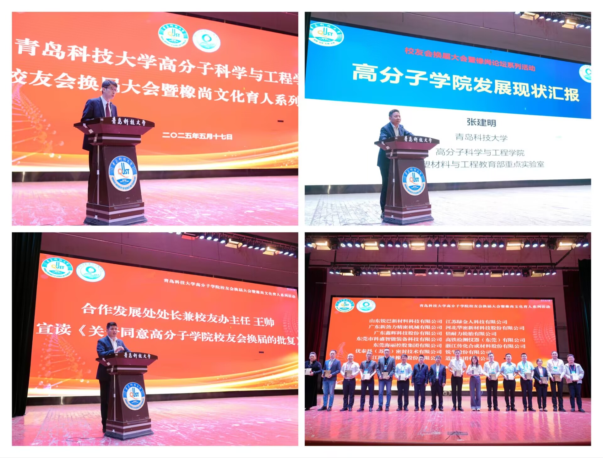 为深入贯彻落实党的二十届三中全会精神,凝聚校友资源力量,不断提升有组织服务经济社会发展能力,5月17日,高分子学院在四方校区举行校友会换届大会。BB贝博艾弗森官方网站党委常委、副校长、校友总会副会长吕万翔出席活动,党委常委、统战部部长秦姣、原橡胶协会会长范仁德、山东橡胶工业协会会长张洪民、株洲时代新材首席科学家杨军,高分子学院党政领导班子、各届校友代表、在校师生代表等800余人参加会议。活动由高分子学院党委书记宣宗伟主持。