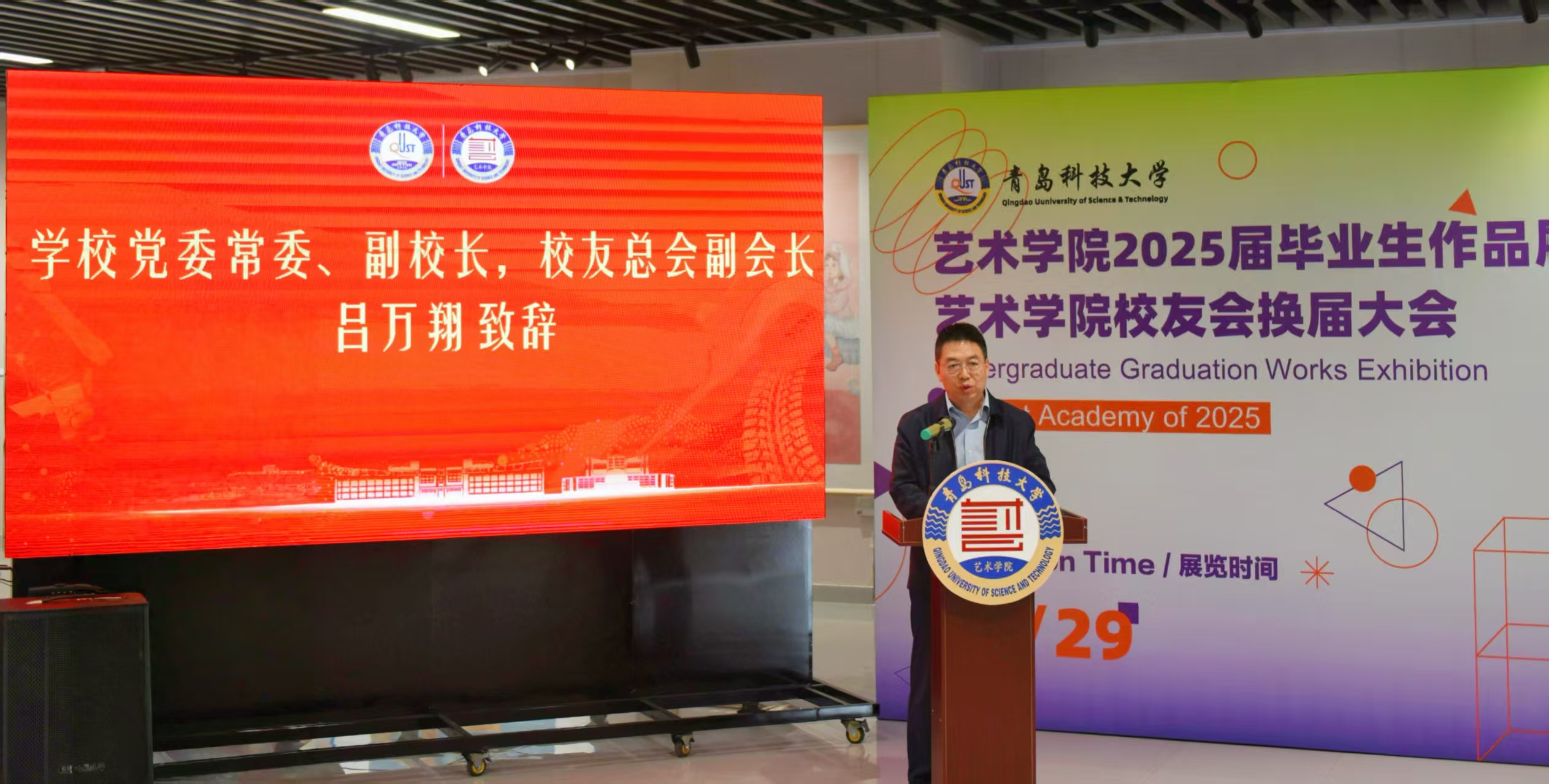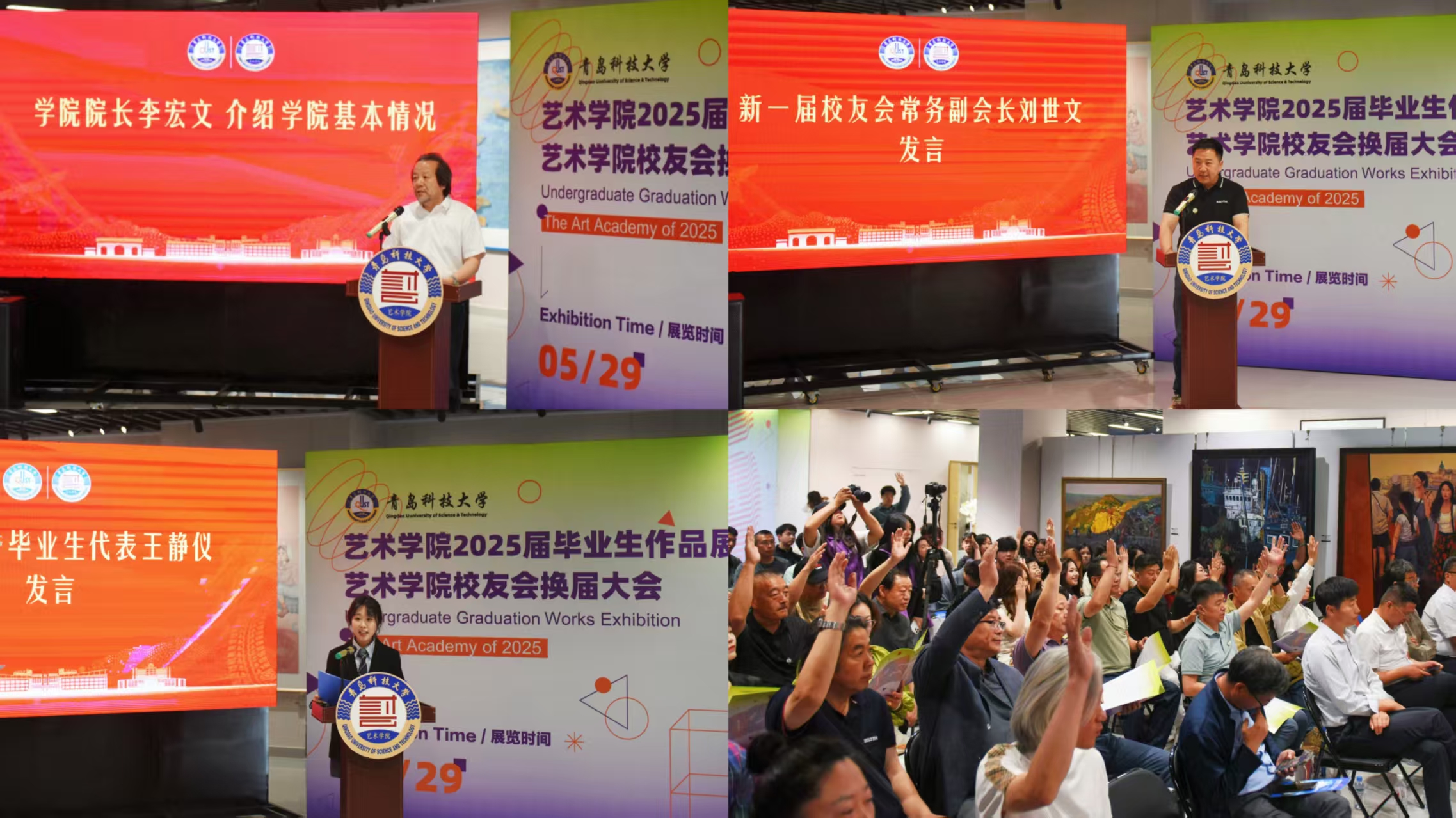 5月29日,艺术学院校友换届大会暨2025届毕业生作品展在青岛市李沧区信联天地蔚央艺展中心举行。学校党委常委、副校长吕万翔,原BB贝博艾弗森官方网站艺术学院院长邱振亮、王春生教授,学校相关职能部门负责人、学院党政班子成员、各届校友代表、在校师生代表等100余人参加会议。艺术学院院长李宏文主持会议。