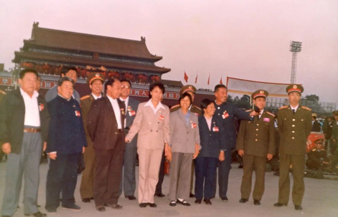 1989年,王瑞(前排左三)与全国劳模代表在天安门广场。